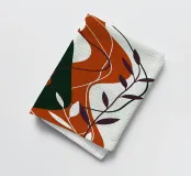Deze moderne abstracte print heeft een rustgevend palet van diep smaragdgroen en warm terracotta oranje, geaccentueerd door sierlijke witte en pruimkleurige botanische elementen. De vloeiende, organische vormen en contrasterende kleuren creëren een gevoel van harmonie en natuurlijke beweging, waardoor het een perfect stuk is om een vleugje aardse verfijning in elke woonruimte te brengen.