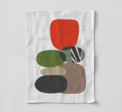 Organische vormen in warm terracotta, aards groen en zacht beige zweven in perfecte balans.