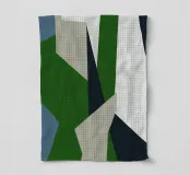 Een abstracte afbeelding met in elkaar grijpende geometrische vormen in gedempte kleuren zoals groen, grijs en blauw. De compositie creëert een gevoel van beweging en complexiteit.
