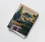 Een villa aan de kust wordt omringd door hoge, donkere cipressen onder een steeds schemeriger wordende hemel. Het laatste licht vangt de zee en creëert een stemmig, sfeervol en romantisch mediterraan tafereel.