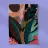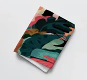 Een elegante en stemmige compositie van donkere, overlappende tropische bladeren met vleugjes oranje en wit, waardoor een geraffineerd en dramatisch spel van schaduw en licht ontstaat.