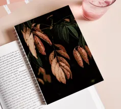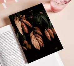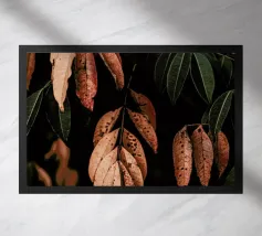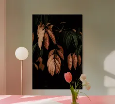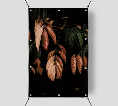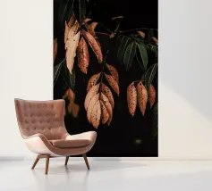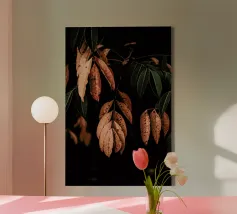 Stemmige herfstbladeren en boomfotografie, op een donkere achtergrond