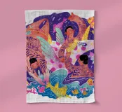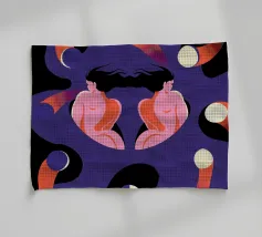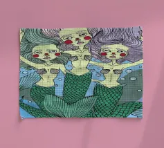 Dit ontwerp is geïnspireerd op een tafereel dat ik aan zee zag; drie getatoeëerde broers zwemmend met een grote eenhoorndobber.