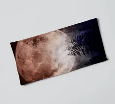 This captivating print features a full moon, bathed in a soft, golden glow, against a deep black backdrop. Two elegant, stylized flowers, one with dark, almost iridescent petals and the other with delicate, golden leaves, stand tall beneath the lunar orb. The interplay of light and dark, combined with the intricate details of the floral elements, creates a truly mesmerizing piece that will add a touch of celestial beauty to any space.