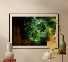Een levendig abstract gemaakt door middel van camerabewegingen, waarbij bloemvormen worden getransformeerd in rode, gele, witte en groene lussen. Deze ritmische compositie vloeit als visuele kalligrafie - gedurfd en toch luchtig, dynamisch en toch zacht. Dit werk is ideaal voor moderne of creatieve interieurs en voegt beweging, energie en een organische impuls toe aan je muren.