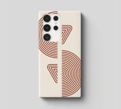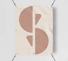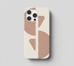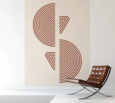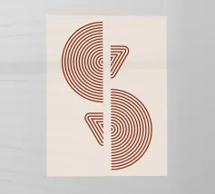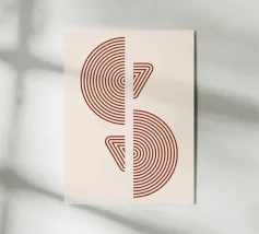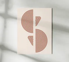 Dit moderne ontwerp combineert geometrische vormen met precieze lijnen in warm roestrood op een crèmekleurige achtergrond. De symmetrische compositie en abstracte esthetiek maken van dit motief een tijdloze blikvanger, ideaal voor moderne of minimalistische woonruimtes. Dit kunstwerk is perfect als muurschildering, kussen, mok of hoesje voor je mobiele telefoon en geeft elke kamer een elegante en stijlvolle touch. Een ideaal cadeau voor liefhebbers van geometrische kunst en minimalistische ontwerpen.