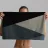 Abstracte geometrische vormen vormen een compositie met gedurfde diagonale lijnen die elkaar onder verschillende hoeken kruisen. Het palet bestaat uit gedempte tinten, waaronder zwart, grijs, beige en roest.