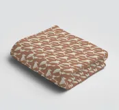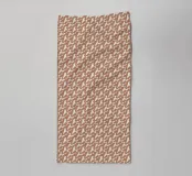 A repetitive geometric pattern composed of white shapes is set against a brown background, creating a uniform and rhythmic design. The arrangement of shapes forms a continuous and seamless visual effect.