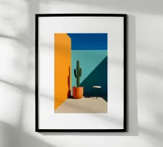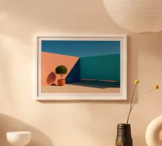 Deze architecturale visie op Kopenhagen speelt met contrasten, tussen herbeleefd brutalisme en pastelzachtheid. De stad ziet eruit als een geometrische sculptuur, schommelend tussen diepe schaduwen en rozig licht. Een moderne, bijna droomachtige poster voor fans van gedurfde vormen.