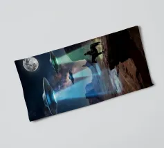 Duik in een droomachtige fusie van surfcultuur en kosmische fantasie met dit betoverende kunstwerk. Een eenzame surfer drijft vredig op een surfplank in het midden van een levendige nevel, omringd door kolkende oranje, blauwe en rode kosmische wolken. Tegen de achtergrond van een sterrenstelsel combineert deze scène sereniteit, verkenning en surrealistische verbeelding. Perfect voor liefhebbers van ruimtekunst, surfesthetiek en gedurfde inspirerende muurdecoratie. Ideaal voor slaapkamers, creatieve studio's en moderne interieurs die op zoek zijn naar een uniek en opbeurend visueel statement. Geef je ruimte een buitenaards tintje met dit fascinerende ontwerp