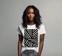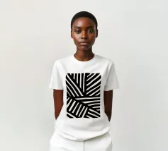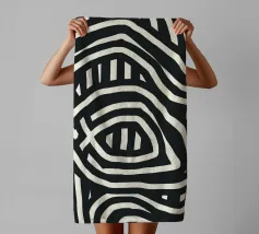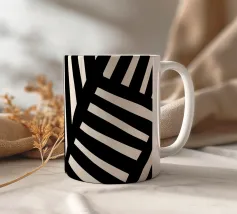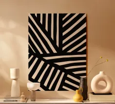 Dit krachtige ontwerp met opvallende zwarte lijnen op een crèmekleurige achtergrond doet denken aan een abstract zebrapatroon. De dynamische geometrie en het contrast maken van dit motief een echte blikvanger, perfect voor moderne muurschilderingen, kussens, mokken, hoesjes voor mobiele telefoons en nog veel meer. Het brengt een minimalistische maar levendige esthetiek in elke kamer. Ideaal voor designliefhebbers die op zoek zijn naar stijlvolle en tijdloze kunst, of als uniek cadeau voor creatieve geesten.