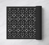 Onderhoudsvriendelijke bovenkant van polyester en onderkant van zwart antislip-rubber.