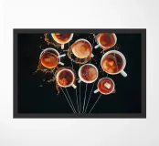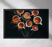 koffie thee kopjes plons ijsblokjes vloeibaar dranken touwtjes hand mok warme drank koude drank omhoog ballon schuim morsen stoom vasthouden drankpresentatie drijvend