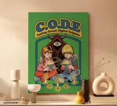 Coding ontmoet spellcasting in deze retro computer whiz kid parodie. Occulte digitale enigma's voor de moderne tovenaar.