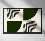 Dompel je ruimte onder in de minimalistische elegantie van deze abstracte geometrische print, een waar testament van tijdloze ontwerpprincipes. Dit opvallende kunstwerk heeft een dynamische kwadrantopstelling, waarbij stevige donkergroene kwartcirkels worden gecombineerd met kwartcirkels gevuld met fascinerende zwarte concentrische bogen. Het samenspel van gedurfde kleurblokken en ingewikkelde lineaire patronen creëert een gevoel van ritmische beweging en verfijnde balans. Dit stuk is perfect voor het toevoegen van een moderne, maar klassieke touch aan elk interieur. Deze print is gemaakt met uitzonderlijke digitale precisie en heeft een resolutie van 7000x5000 pixels.