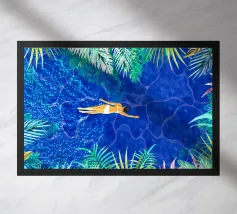 Dit levendige kunstwerk heeft een dynamische compositie van tropische bladeren in felle, contrasterende kleuren. Het werk toont een mix van diepgroene, zachtroze en feloranje bladeren, met ingewikkelde aderpatronen die textuur en detail toevoegen. Het samenspel van warme en koele tinten creëert een levendig, energiek gevoel, terwijl de schone, crèmekleurige achtergrond de bladeren goed laat uitkomen. De gestileerde, grafische benadering geeft het kunstwerk een moderne en speelse esthetiek en roept de weelderige schoonheid van de natuur op in een eigentijds ontwerp.