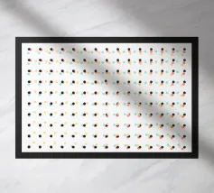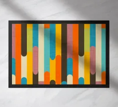 Dit digitale kleurrijke kunstwerk met parallelle lijnen is een visueel opvallend stuk dat het gebruik van precieze lijnen laat zien. De kunstenaar (kathrinmay) gebruikt verschillende lengtes van lijnen om een gevoel van dimensionaliteit te creëren, terwijl het gebruik van kleuren evenwicht creëert.