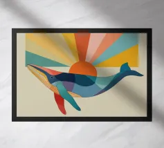 Mid century illustratie van een fles Rum, compleet met walvis :)