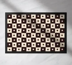 Dit naadloze en perfect geometrische patroon is verkrijgbaar in verschillende kleuren, waaronder een combinatie van rood/beige en mint/beige. De strakke, precieze lijnen van de vierkanten geven het ontwerp een scherpe en moderne uitstraling, ideaal voor iedereen die houdt van een minimalistische en gestructureerde esthetiek. Of je nu op zoek bent naar opvallende stukken of subtiele woondecoratie, dit patroon is veelzijdig genoeg om bij elke stijl te passen. Bekijk het voor een strakke en eigentijdse toevoeging aan je interieur!