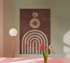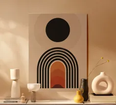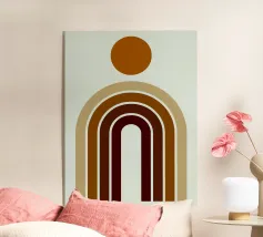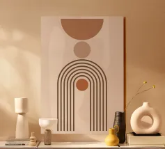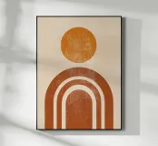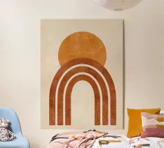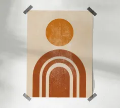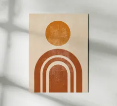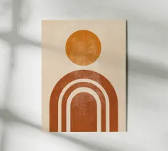 Bring warmth and balance into your space with this abstract geometric artwork featuring a sun and arch design in earthy terracotta tones. The minimalist retro aesthetic adds a timeless, calming touch to any interior. Perfect for modern, bohemian, or Scandinavian-inspired décor.