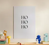 "Add a touch of modern flair to your holiday decor with this minimalist 'Ho Ho Ho' poster. Featuring bold black typography on a solid light background, this artwork is perfect for creating a festive and stylish atmosphere in your home. Ideal as a centerpiece for Christmas celebrations, this unique design combines retro charm with contemporary aesthetics. Perfect for art lovers, holiday enthusiasts, and anyone looking to enhance their space with vibrant seasonal decor. Frame it to elevate your festive setup!"