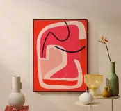 Minimalist abstract line art in red and pink acrylic glass