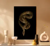 Elevate your space with the mesmerizing allure of our Python Poster, showcasing the sinuous beauty of a python against a bold black background. The intense contrast enhances the intricate scales and graceful curves of this remarkable creature, adding a touch of mystery and sophistication to any room. Perfect for nature enthusiasts or anyone with a taste for bold decor, this high-quality poster promises vibrant details and lasting color. Let this captivating piece become the focal point of your space. Unleash the power and elegance of the wild