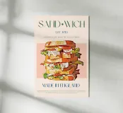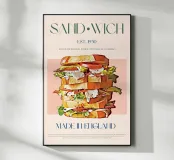 Set on a neutral, cream background, this elegant illustration of the classic club sandwich adds sophistication to any kitchen, cafe or dining area. This minimalist yet informative design will spark conversation in any setting, adding a refined touch to your environment.
