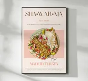 Set on a neutral, cream background, this elegant illustration of shawarma adds sophistication to any kitchen, cafe or dining area. This minimalist yet informative design will spark conversation in any setting, adding a refined touch to your environment.