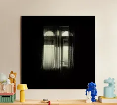 Soft light filters through a window, creating a hazy ambianc acrylic glass