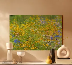 A luminous dialogue between yellow chrysanthemums and delicate white blossoms. Sometimes vibrant, sometimes subtle, the composition plays with focus and space — inviting the viewer into both harmony and contrast. A fine art print that brings poetic balance and natural beauty to any interior.