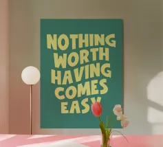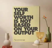 Your Self Worth Is Not Based On Your Output (you are not an app). This bold design calls out hustle culture with a sharp, human-centred message. Set in confident black text on a soft yellow background, it reclaims value beyond productivity. Ideal for workspaces, therapy rooms or rest-focused corners, this piece encourages compassion over comparison. A meaningful gift for burnout recovery, career changers or mental health advocates. Grounding, unapologetic and vital—it’s the pause button we all need sometimes.