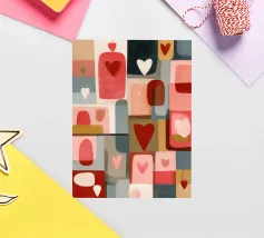 A cheerful and heartwarming patchwork of stylized plants, vibrant patterns, and a large, loving heart. This eclectic artwork is a joyful celebration of love, growth, and handcrafted beauty.