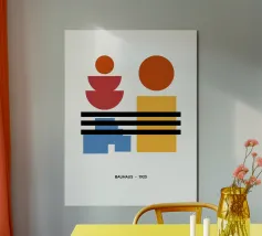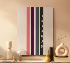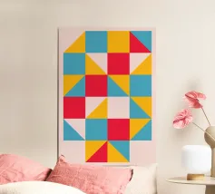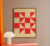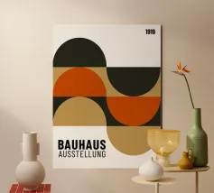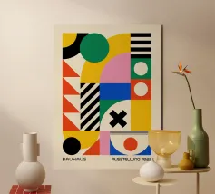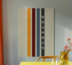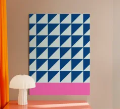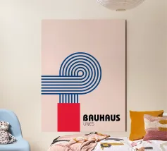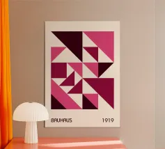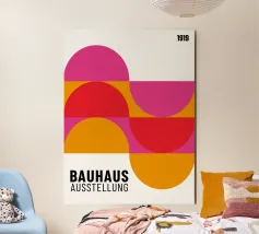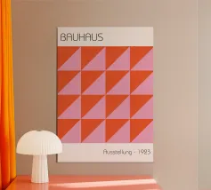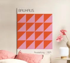This graphically clear, abstract Bauhaus motif shows a rhythmic triangle and square pattern in strong red on a warm cream background. The strictly geometric arrangement creates an exciting balance of dynamism and order and is reminiscent of classic Bauhaus and mid-century design principles. Through the deliberate use of contrast and repetition, the pattern appears modern, timeless and architectural at the same time. The reduced colour palette lends the design calm and strength without losing expression. Ideal as a wall mural for living rooms, design posters, modern wall art.