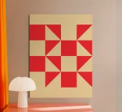 Abstract Bauhaus triangular pattern in red and cream alu-dibond