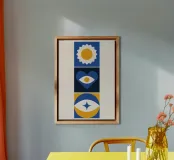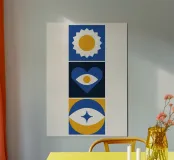 Boho Abstract Triptych Blue & Yellow Geometric Eye Heart alu-dibond