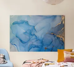 Dynamic blue waves create an abstract background flowing alu-dibond