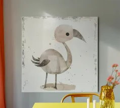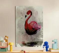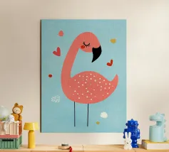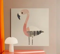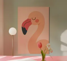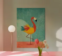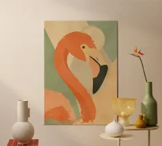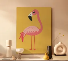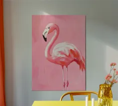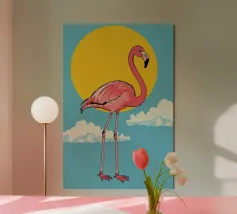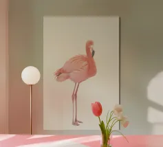 Flamingo standing on simple background with playful design alu-dibond