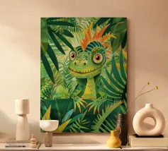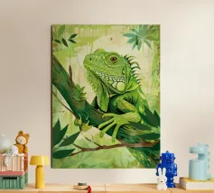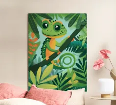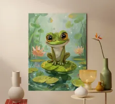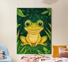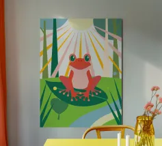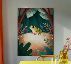 Frog in lush rainforest setting with light filtering through alu-dibond