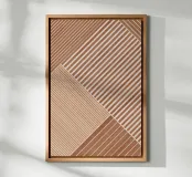 Striking geometric design featuring alternating light and dark brown diagonal lines intersecting at various angles, creating a visually dynamic and visually appealing pattern.