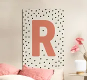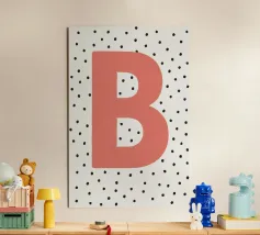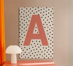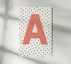 The playful design with the letter "R" in bright red on a black dot pattern is a stylish eye-catcher. Perfect for children's rooms, modern living spaces or as a gift idea with a personal touch. The clear typography combined with a Scandinavian-inspired pattern adds a charming accent to any room. Ideal for combining with other letters from the series.