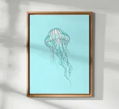 Graceful minimalist line art of a jellyfish, perfect for ocean lovers and marine-inspired decor. A tranquil and elegant addition to any space.