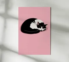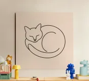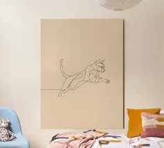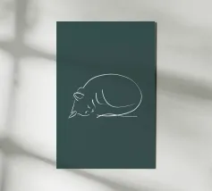 Line drawing of a curled-up cat resting on a soft background alu-dibond