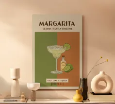 Set on a neutral, cream background, this elegant illustration of the famous margarita cocktail adds sophistication to any kitchen, cafe or dining area. This minimalist yet informative design will spark conversation in any setting, adding a refined touch to your environment.