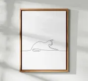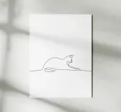 The playful and confident essence of a cat flexing with this minimalist line drawing. A modern abstract art piece that symbolizes agility, strength, and the charismatic nature of felines.