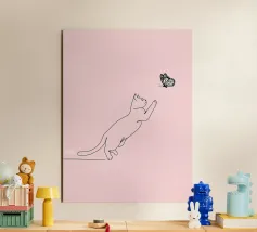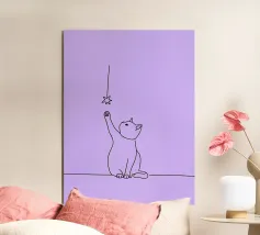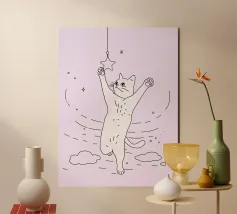 Minimalist Line Drawing of a Cat Hanging on a String | Moder alu-dibond