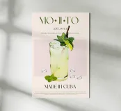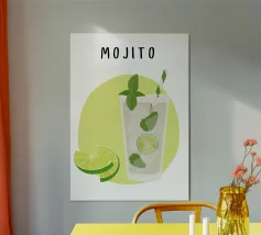 Set on a neutral, cream background, this elegant illustration of the famous cocktail mojito adds sophistication to any kitchen, cafe or dining area. This minimalist yet informative design will spark conversation in any setting, adding a refined touch to your environment.