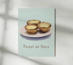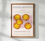 Set on a neutral, cream background, this elegant illustration of the famous Portuguese pastry pastel de nata adds sophistication to any kitchen, cafe or dining area. This minimalist yet informative design will spark conversation in any setting, adding a refined touch to your environment.