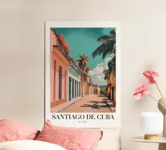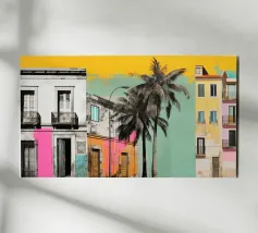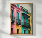 The pastel tones of this picturesque image bring Havana’s architecture to life. Showcasing stunning pink and teal facades, the intricate balcony designs tell a story of rich cultural and historic significance. The worn textures of the walls, with peeling paint and aged surfaces, offer a glimpse into the timeless charm of the city. The composition beautifully contrasts vibrant colors against the natural aging of the structures, embodying the essence of Havana’s tropical and historic allure.