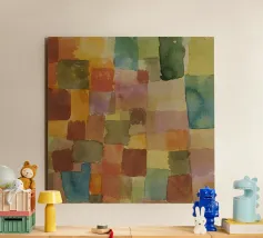 Immerse yourself in the captivating world of Paul Klee with "About a motif from Hammamet," a striking abstract work from 1914. This piece embodies Klee's exploration of color, rhythm, and form, inspired by his travels. The painting features a complex arrangement of multi-colored blocks and textures, creating a harmonious yet dynamic composition that invites contemplation. It showcases his masterful ability to convey emotion and structure through abstraction. Our digital poster faithfully reproduces this iconic artwork with stunning clarity and detail, boasting an impressive 7000x5000 pixels at